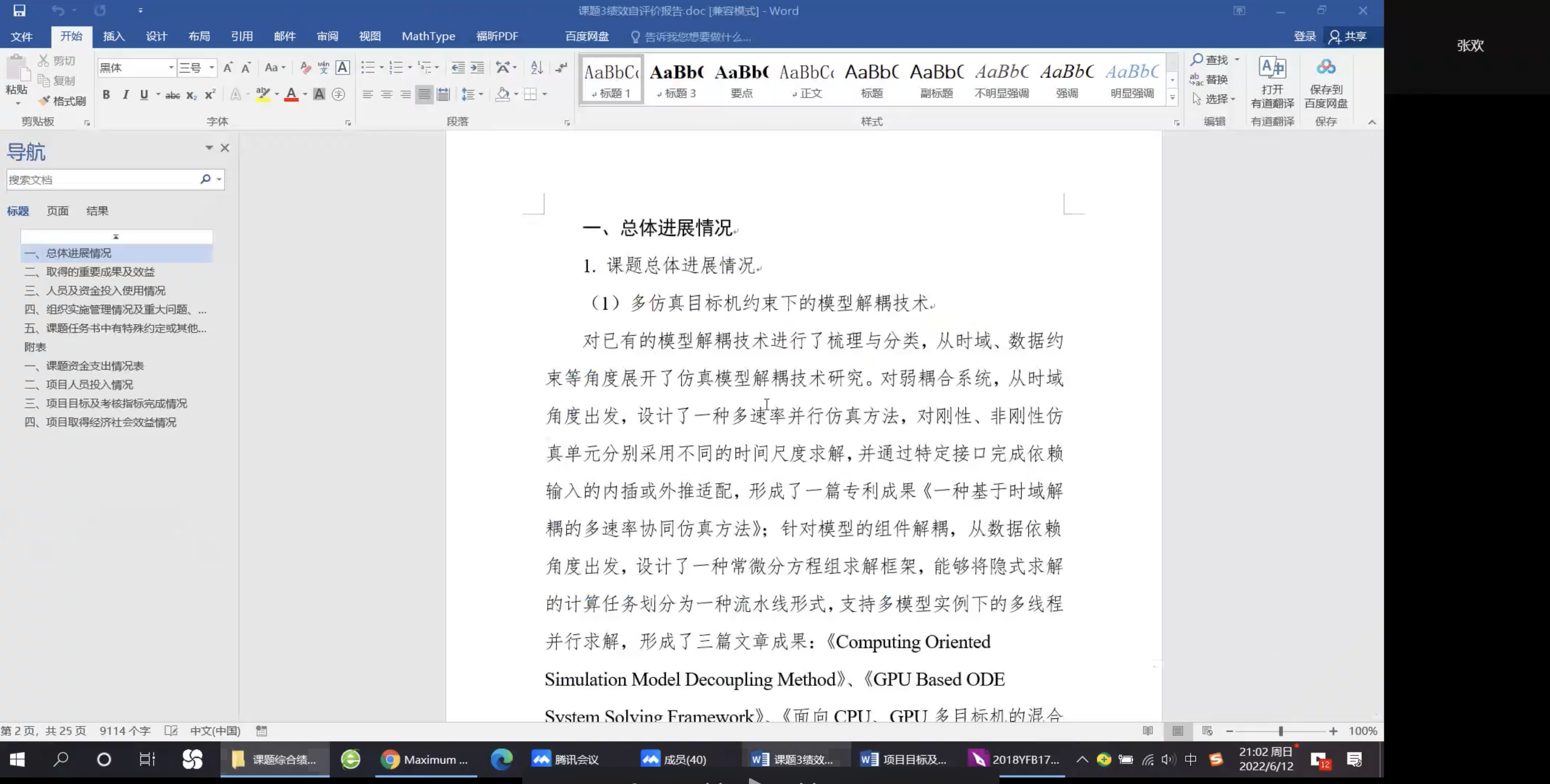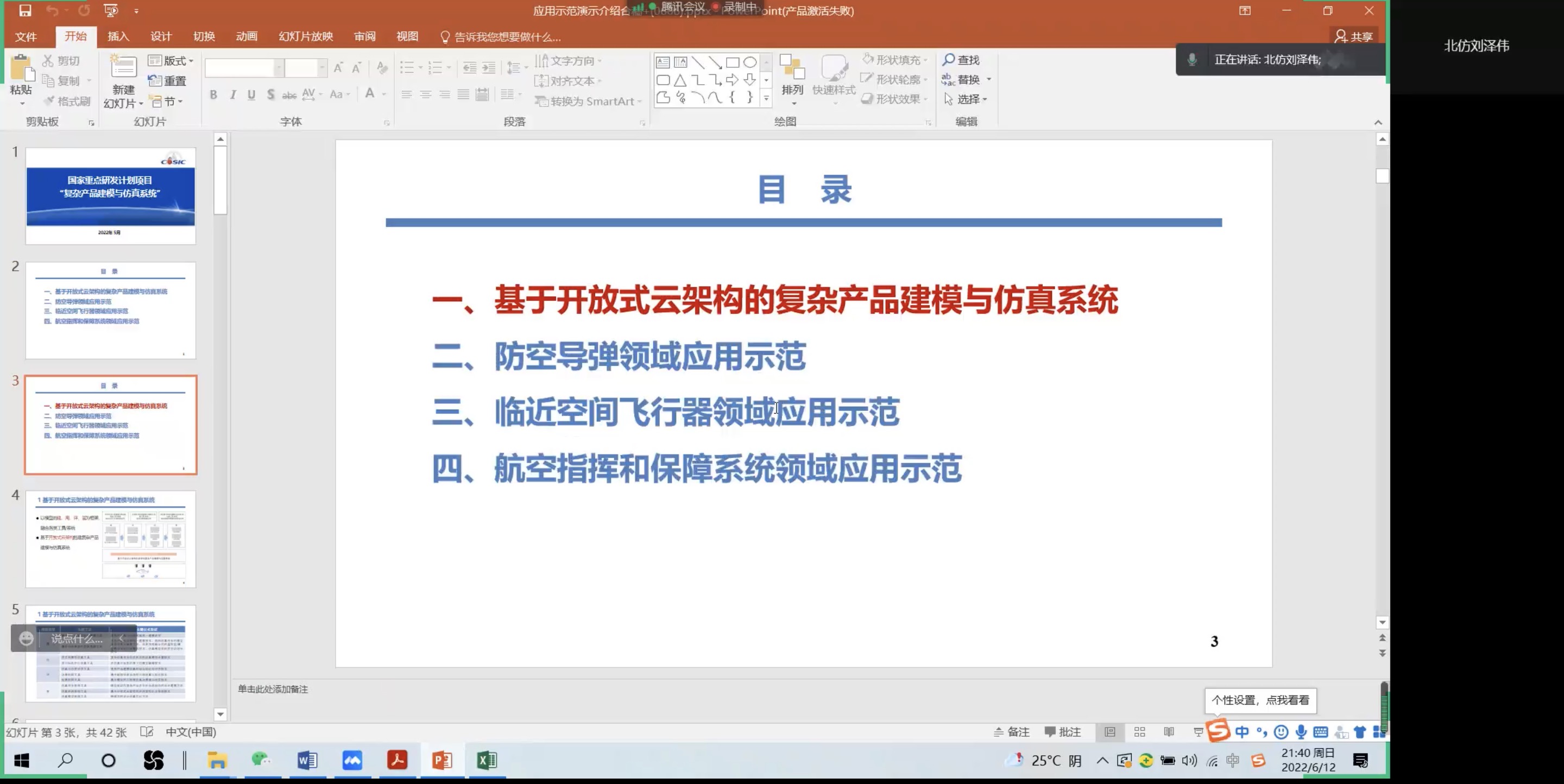 2022年6月12日,“复杂产品建模与仿真系统”项目总体组会会议以腾讯会议形式于线上召开。会议内容如下: